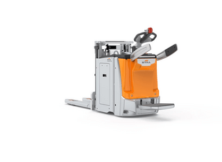The fold-out, heightadjustable side arms also guarantee safe driving at up to 10 km/h. STILL Dynamic Drive Control adjusts the driving speed dynamically to the current conditions and guarantees optimal and reliable handling rates in all situations. In addition, the EXD-SF can be operated with one hand and impresses thanks to its hydraulically dampened support wheels with excellent traction and optimal driving convenience – even on ramps and when loading/unloading trucks.